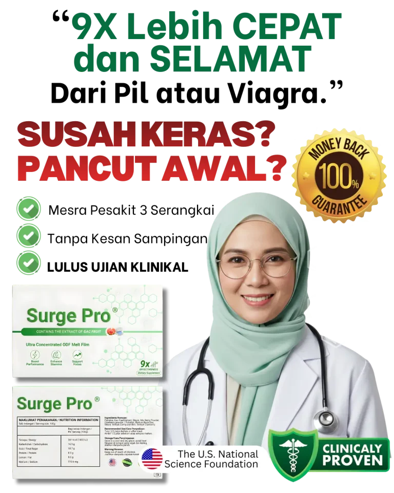 ** Keputusan adalah berdasarkan maklum balas pengguna dan boleh berbeza bagi setiap individu bergantung kepada gaya hidup, pemakanan dan konsistensi penggunaan. SURGE PRO bukan produk perubatan dan tidak menjanjikan hasil tertentu.